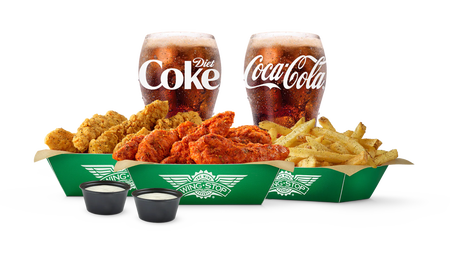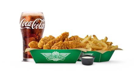 8 Crispy Tenders with up to 2 flavors, large fries or veggie sticks, 2 dips and 2 20oz drinks